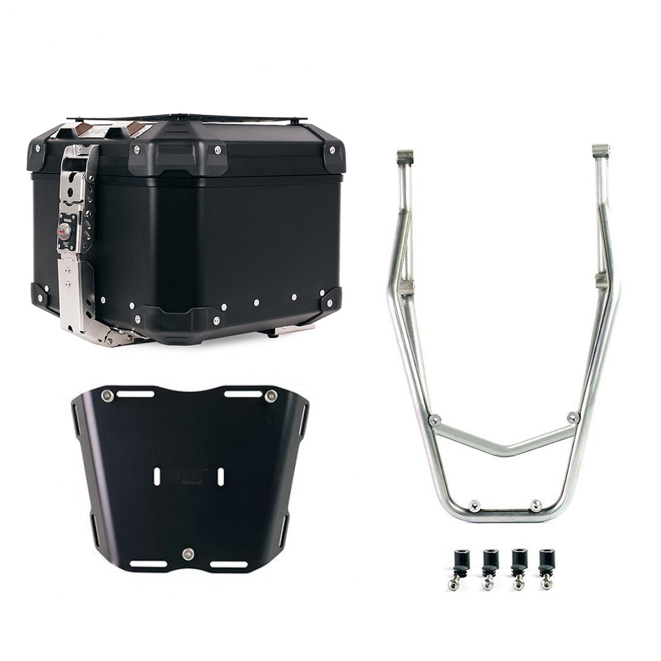Hergestellt aus 5 mm dickem eloxiertem Aluminium, ermöglicht es die Montage unseres Topcases mit der Bezeichnung ATL3 auf Gepäckträgern verschiedener Modelle. Dieses Produkt beinhaltet keine Befestigungssysteme für das Motorrad, die separat erworben werden müssen, wie z. B. Code A9.
