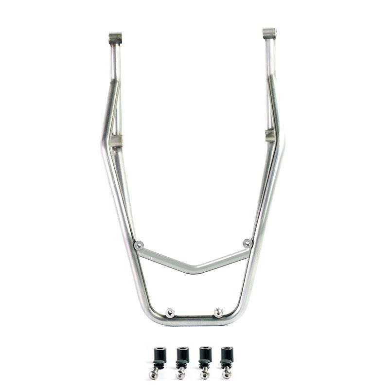Gepäckträger aus Edelstahlrohr in originalgetreuer Ausführung. Er schließt das Heck ab und ist mit Haltegriffen für den Beifahrer ausgestattet. Es wird ganz einfach an den 4 von Ducati vorgesehenen Befestigungspunkten am Fahrradrahmen befestigt. Es ist mit allen unseren Satteltaschenhaltern kompatibel. So können Sie Gepäckträger und Taschenträger gleichzeitig mit den Originalbefestigungen montieren, ohne Änderungen am Fahrrad vornehmen zu müssen. Robust und praktisch vervollständigt es die Ästhetik des Fahrrads.