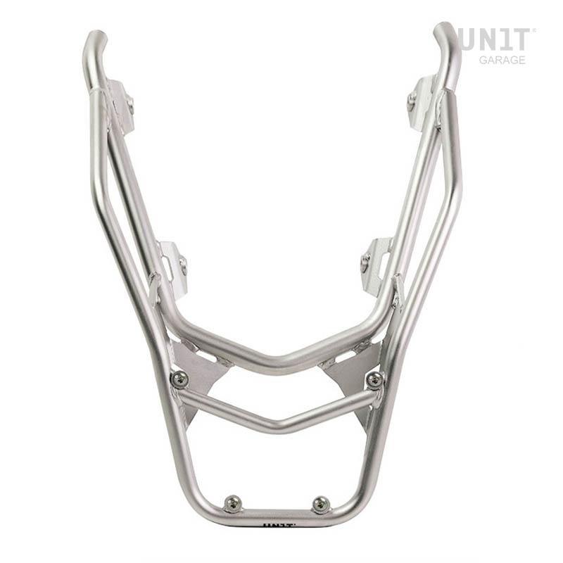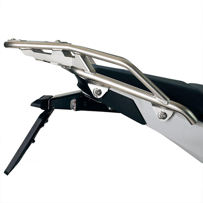 Es vervollständigt den Heckbereich und verfügt über komfortable Haltegriffe für den Beifahrer. Robust und praktisch, bietet es mit den vier vorinstallierten Befestigungspunkten Platz für die U108- und die AL3-Platte für das Aluminium-Topcase. Durch die Montage der AL13-Platte schafft es zudem zusätzlichen Stauraum für Softbags. Diese Ausführung ist mit einer hochbeständigen, mattschwarzen Epoxidpulverbeschichtung versehen.