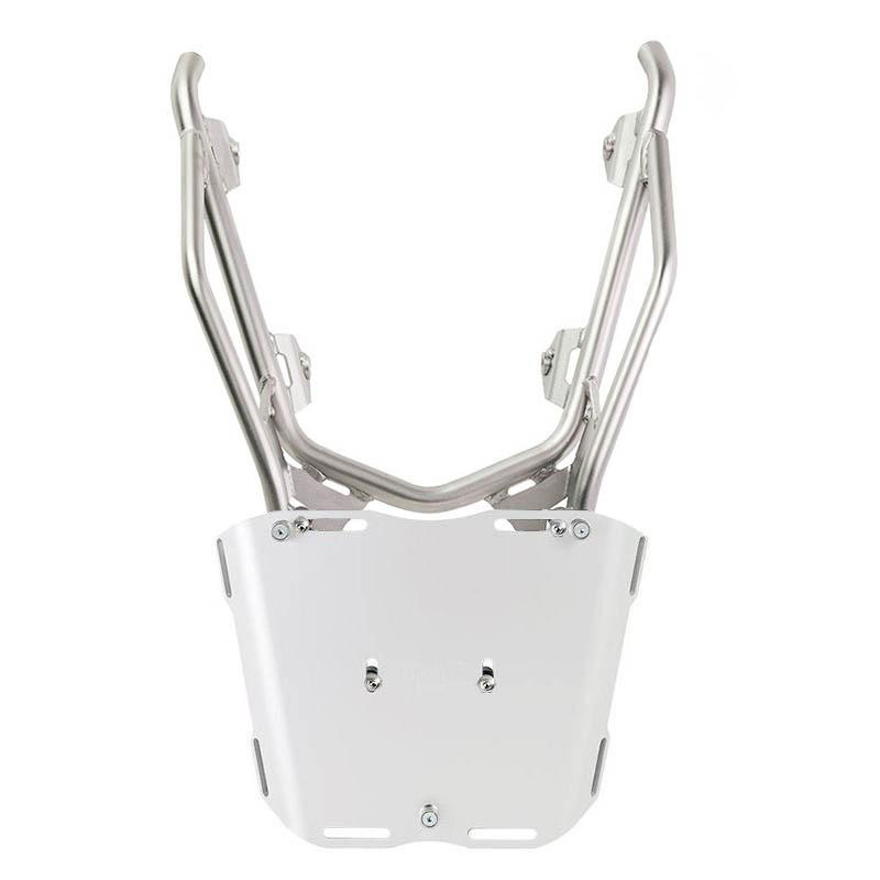 3. Verstärkter Gepäckträger aus Edelstahl zur Befestigung von Montageplatten oder Topcase (silberfarben)
