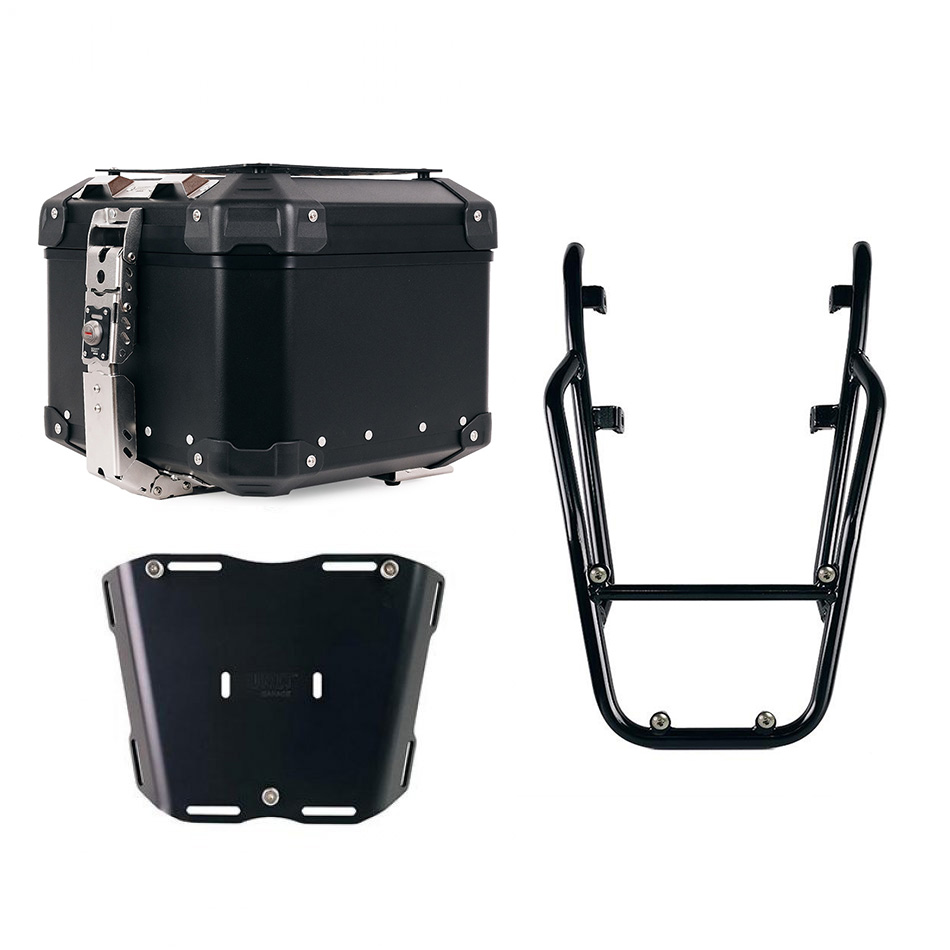 Es vervollständigt den hinteren Teil und ist mit bequemen Griffen für den Beifahrer ausgestattet. Es ist robust und praktisch und kann mithilfe der 4 mitgelieferten Befestigungen sowohl das Codeschild: U108 als auch das Codeschild: AL3 für das Aluminium-Topcase aufnehmen. Auch hervorragend geeignet, um durch die Montage der Platte eine größere Ladefläche für weiche Taschen zu schaffen. Code: AL13 In dieser Version wird es mit einer hochbeständigen Epoxidpulverbeschichtung in Mattschwarz angeboten.