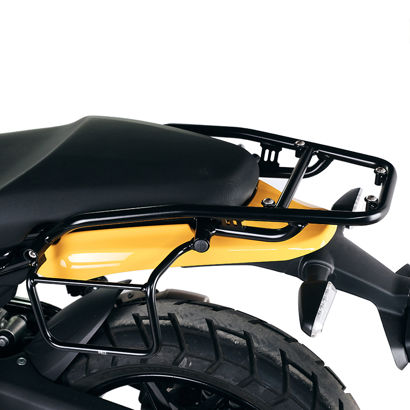 Es schließt den hinteren Teil ab und ist mit bequemen Haltegriffen für den Sozius ausgestattet. Es ist robust und praktisch und kann mithilfe der 4 vorgesehenen Befestigungen sowohl die Codeplatte: U108 als auch die Codeplatte: AL3 für das Aluminium-Topcase aufnehmen. Auch hervorragend geeignet, um durch die Montage der Platte mehr Laderaum für weiche Taschen zu schaffen. Code: AL13. In dieser Version wird es mit einer hochbeständigen Epoxidpulverbeschichtung in Mattschwarz angeboten.