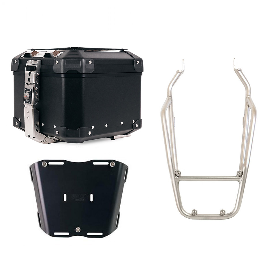 Hergestellt aus 5 mm dickem eloxiertem Aluminium, ermöglicht es die Montage unseres Topcases mit der Bezeichnung ATL3 auf Gepäckträgern verschiedener Modelle. Dieses Produkt beinhaltet keine Befestigungssysteme für das Motorrad, die separat erworben werden müssen, wie z. B. Code A9.
