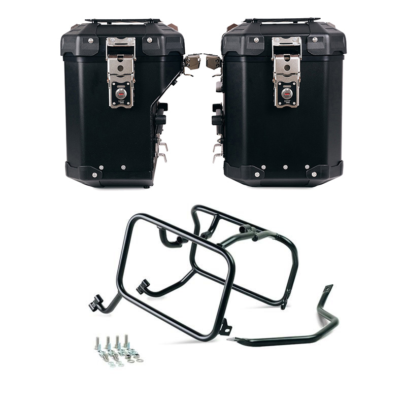 1. Zwei seitliche Aluminiumtaschen. Ausführung 48 l + 41 l (Auspuffseite)