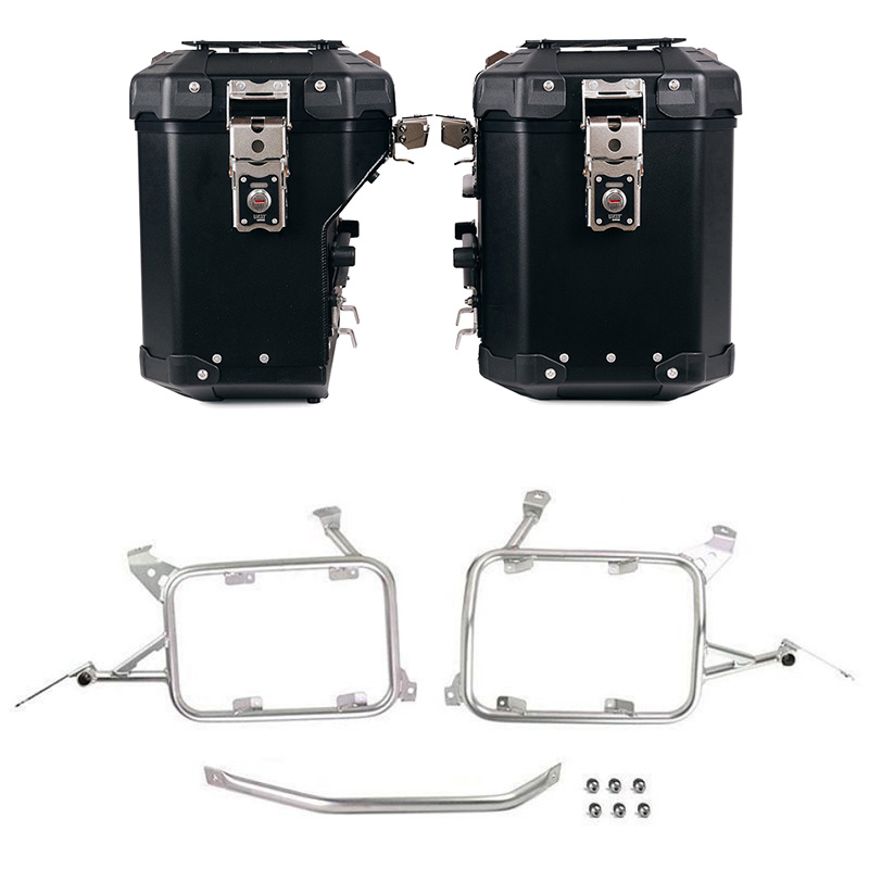 1. Zwei seitliche Aluminiumtaschen. Ausführung 48 l + 41 l (Auspuffseite)