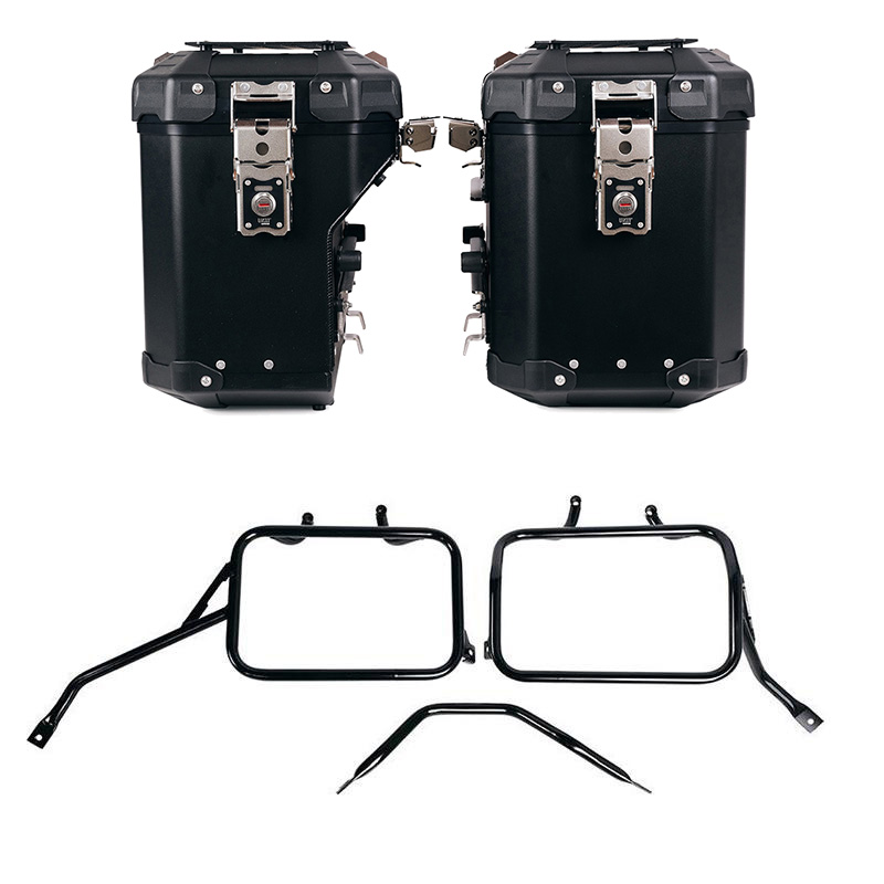 1. Zwei seitliche Aluminiumtaschen. Ausführung 48 l + 41 l (Auspuffseite)