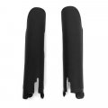 Stabiler Kunststoff und lackierte Schutzbleche mit mattschwarzer und transparenter Oberfläche schützen die Gabelabdeckungen wie bei Enduros.