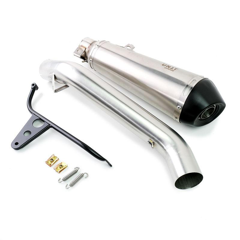 Homologierter, von Hand gefertigter Schalldämpfer aus Edelstahl mit WIG-Schweißung, verbessert das Ansprechverhalten des Motors, ohne Änderungen am Mapping oder den Einsatz zusätzlicher Steuergeräte.