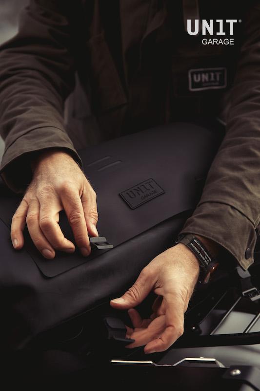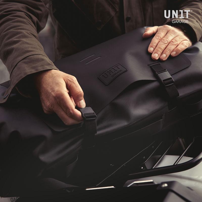 Universell und vielseitig, kann es an jedem Motorradtyp befestigt werden, es kann an jedem Gepäckträger, an Aluminiumtaschen oder am Beifahrersitz verankert werden. Die doppelte Öffnung erleichtert den Zugang und macht es symmetrisch, wenn es am Fahrrad befestigt ist. Die obere Klappe hat zwei Gummibänder im Inneren und eine rutschfeste Tasche, in der Sie schnell anderes Gepäck oder die Jacke aufbewahren können, wenn Sie anhalten.