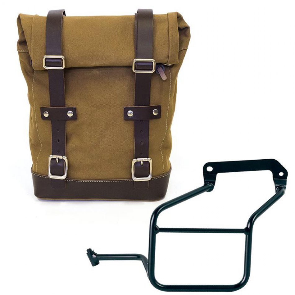 Canvas-Seitentasche 10L - 14L und Scram-Seitentasche aus Spaltleder 22L-30L + linker Rahmen