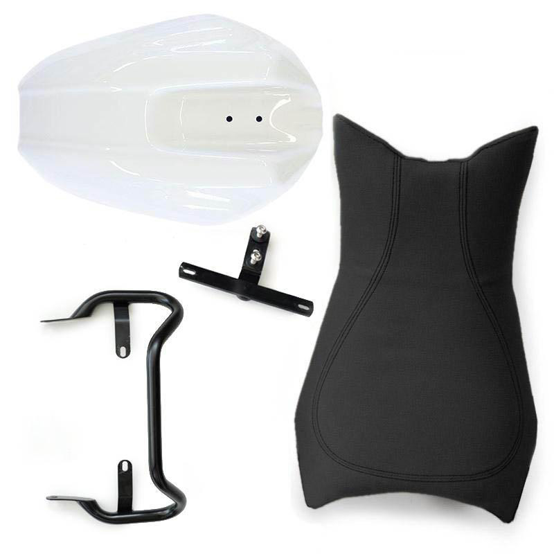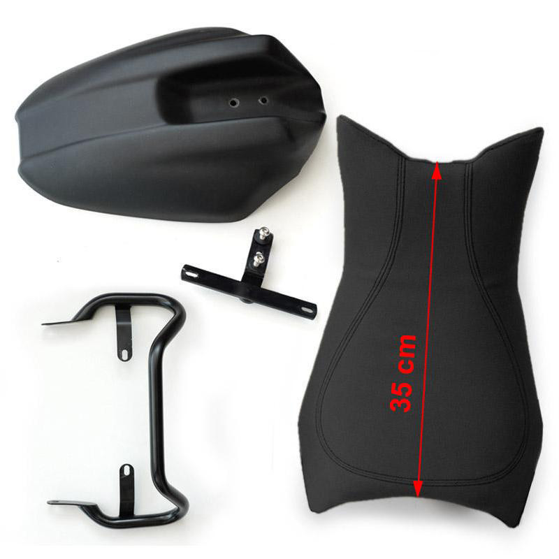 Hinterer Kotflügel aus ABS, komplett mit Befestigungshalterung und Vibrationsdämpfern. Es passt perfekt zur Rückseite des Motorrads und zu unserem Solositz, Code: 1602, und kann mit dem Original-Kennzeichenhalter montiert werden. Aber die Oberseite ist auf jeden Fall mit unserer Rücklicht-Trägerplatte, Code: 1604, kombinierbar. Dank der mattschwarzen Oberfläche ist die Installation sehr einfach.