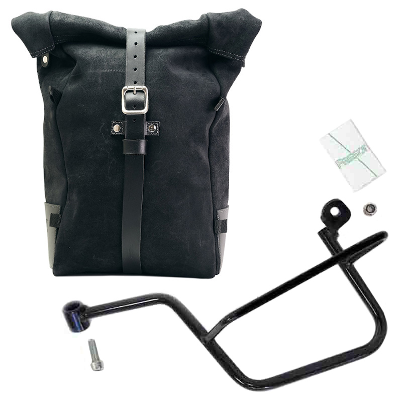 1. Pure Seitentasche, erweiterbar von 10 auf 14 Liter, handgefertigt in Italien aus robustem, gewachste Spaltleder höchster Qualität.