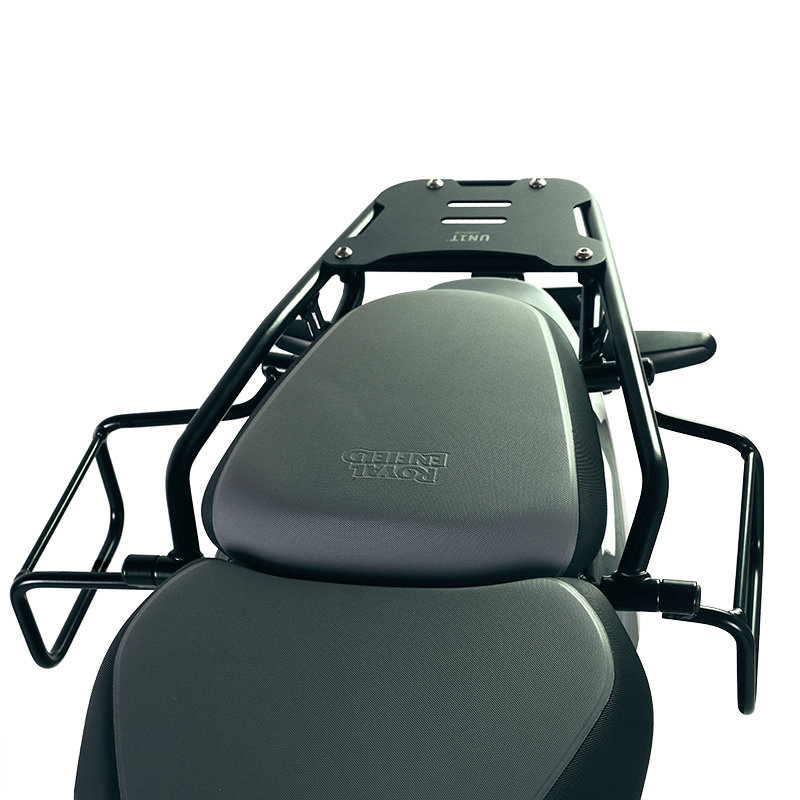 Entworfen auf dem Rahmen der Royal Enfield, fügt es sich perfekt in den Rest des Motorrads ein und besteht aus behandeltem Stahl mit einer mattschwarzen Epoxidpulverbeschichtung