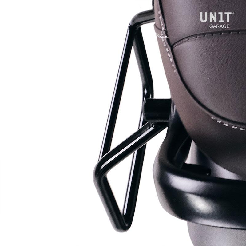 2. Linker Rahmen für Taschen mit Schnellkupplung aus Stahl mit mattschwarzer Epoxidpulverbeschichtung.
