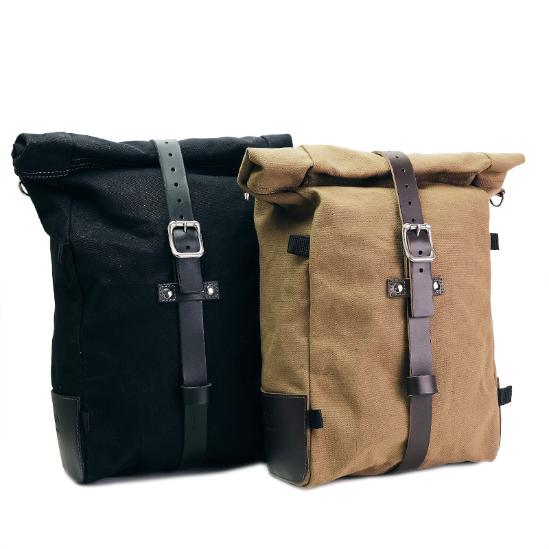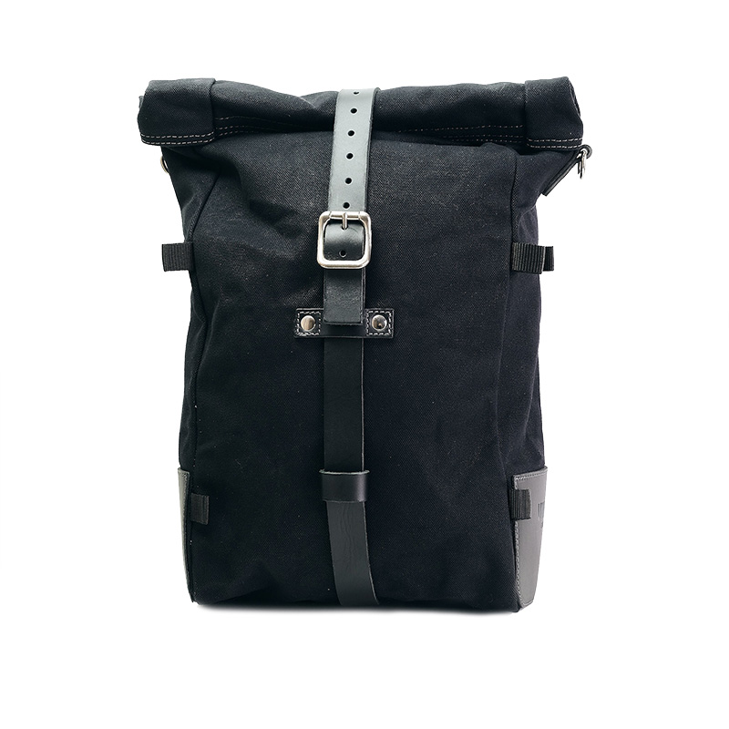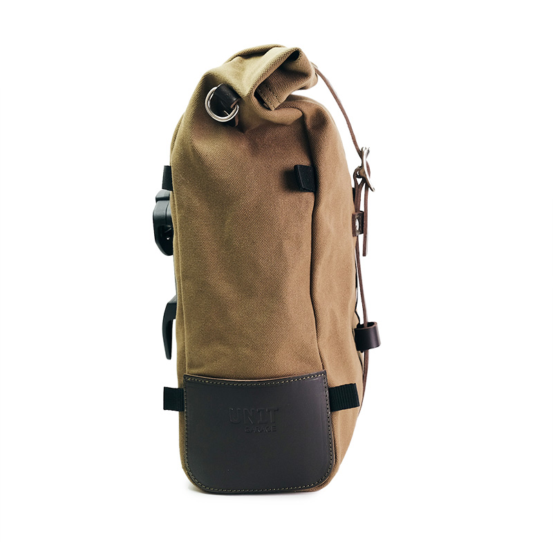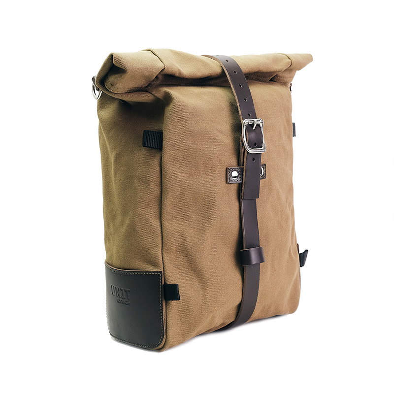 Reine Seitentasche, erweiterbar von 10 auf 14 Liter, handgefertigt in Italien aus robuster, hochwertiger Wachsbaumwolle.