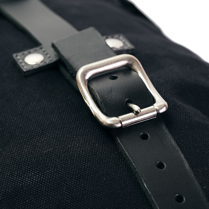 Schwarzes Canvas mit schwarzem Lederbesatz