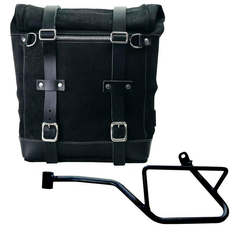 Scram-Seitentasche, erweiterbar von 22 auf 30 Liter, handgefertigt in Italien aus robustem, wasserdichtem Spaltleder von höchster Qualität.