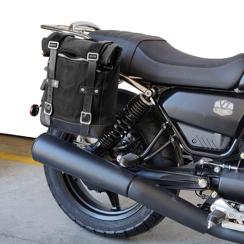 Entwickelt, um in wenigen Minuten und ohne Änderungen an Ihrem Motorrad auf der rechten Seite montiert zu werden. Bereit zur Aufnahme unseres Schnellbefestigungssystems, schön und minimalistisch, auch wenn die Tasche nicht montiert ist. Es kann bequem mit dem Passagier an Bord genutzt werden.