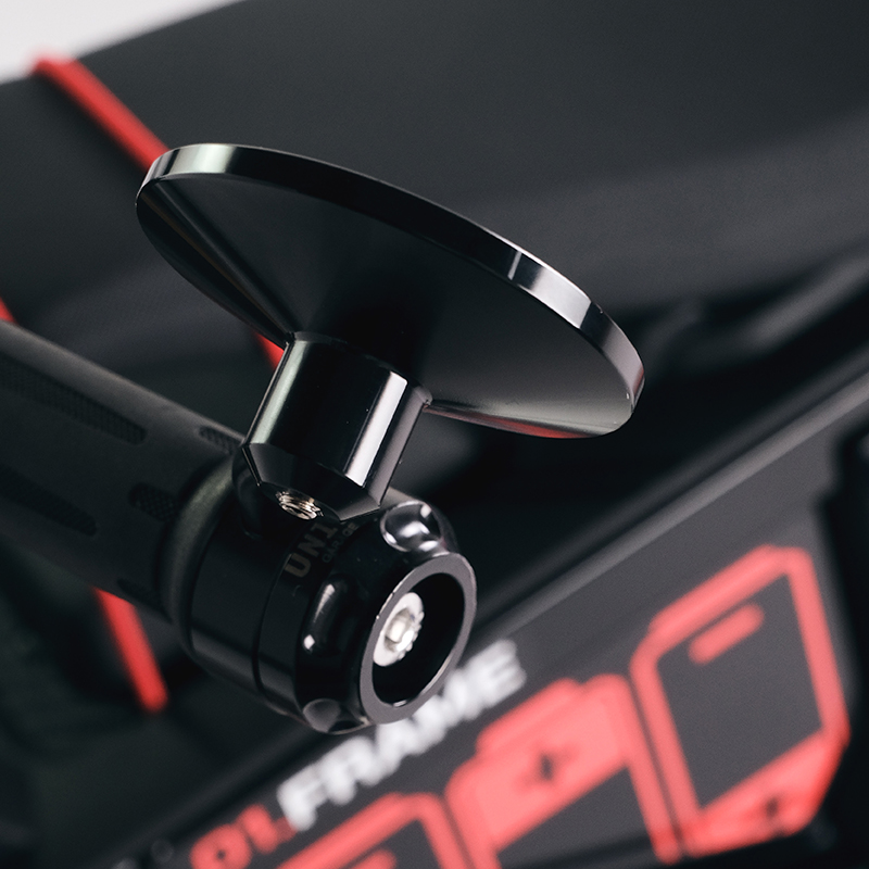Spiegel aus schwarz eloxiertem Aluminium, speziell für den BMW CE 02 gefertigt.