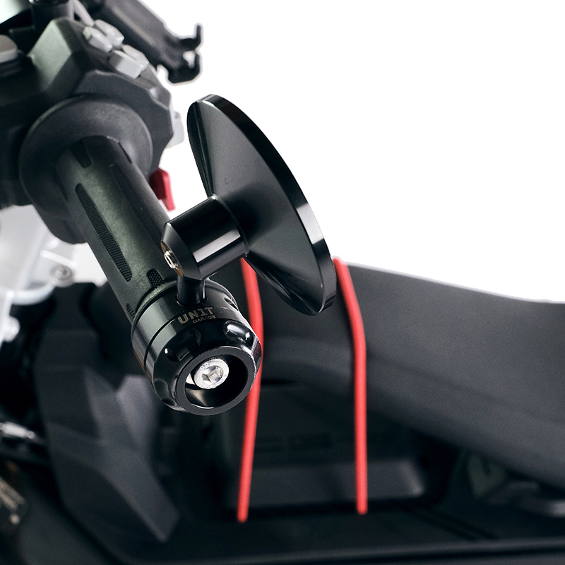 Im Kit finden Sie zwei Aluminiumklemmen komplett mit Schrauben und zwei Spiegeln. Spiegeldurchmesser 72 mm Für eine korrekte und sichere Montage: Schrauben bei montierten Spiegeln festziehen, Probefahrt durchführen und anschließend die Schrauben wieder festziehen.