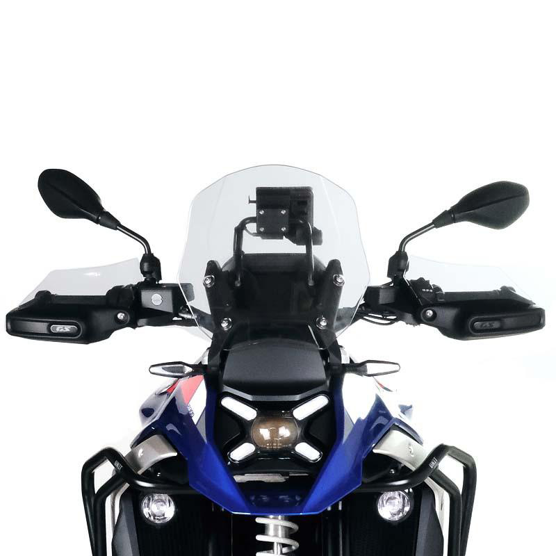 Paar Handschutzverlängerungen, kompatibel mit Original-Handschützern. Sie sind in den Standard-Handschützern montiert, was sie schützender und eleganter macht und sich hervorragend zum besseren Schutz Ihrer Hände vor Regen, Kälte und Stößen eignet. Komplett mit Montagesatz. Hochwertiges PMMA-Material