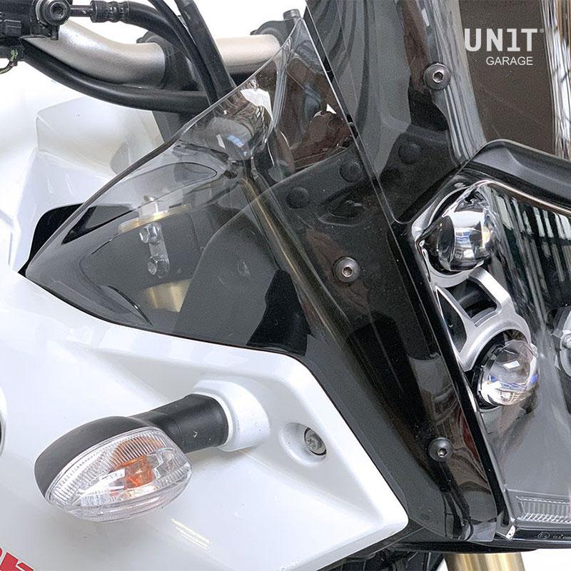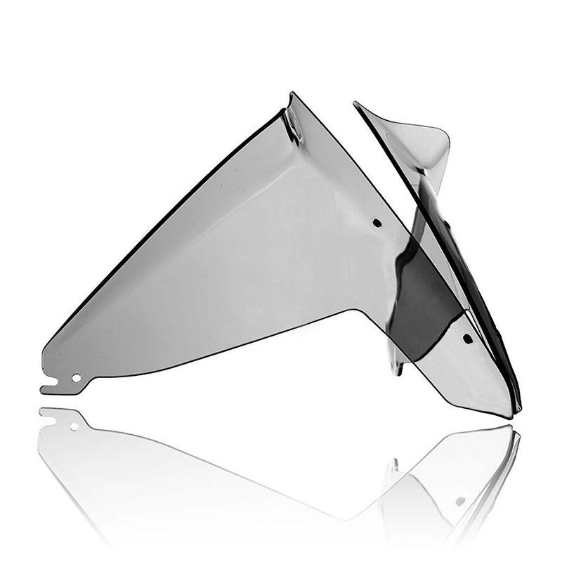Deflektoren aus hochwertigen Materialien, 4 mm dick wie das Original. Hergestellt nach strengsten Sicherheitsstandards und unter Beachtung des Know-hows, das maximale Widerstandsfähigkeit und Transparenz garantiert. Das Anbringen der Seitenabweiser verbessert den Reisekomfort. Dank ihnen sinkt der Luftdruck auf Schultern und Armen radikal und kann selbst die längsten Strecken mit maximalem Komfort bewältigen.