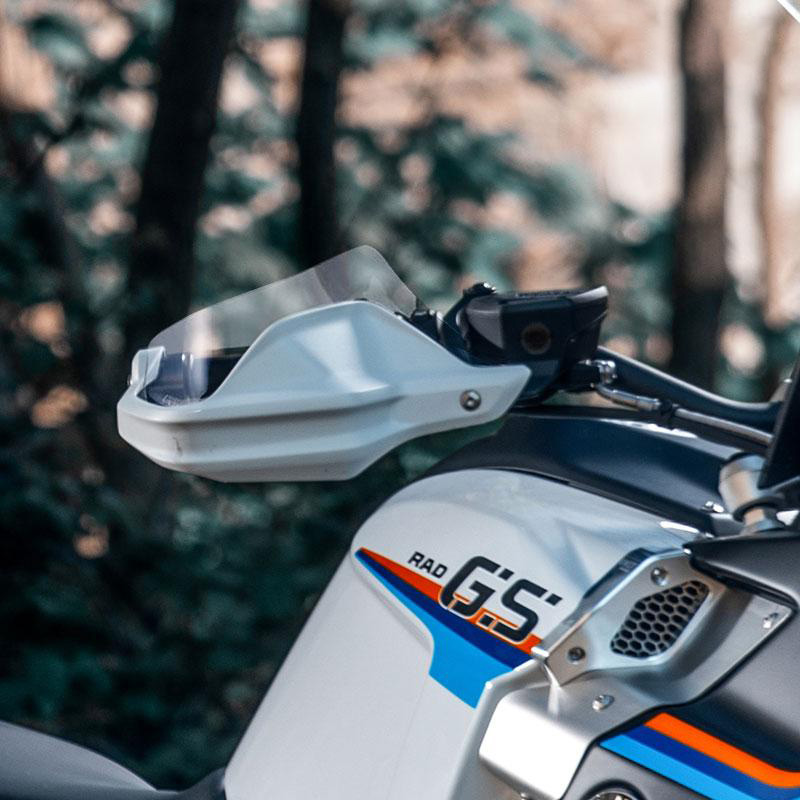 Paar Handschutzverlängerungen kompatibel mit Original Handprotektoren. Sie sind in den Standard-Handschützern montiert, wodurch sie schützender und eleganter sind und Ihre Hände besser vor Regen, Kälte und Stößen schützen. Komplett mit Montagesatz. PMMA-Material 3 mm dick.