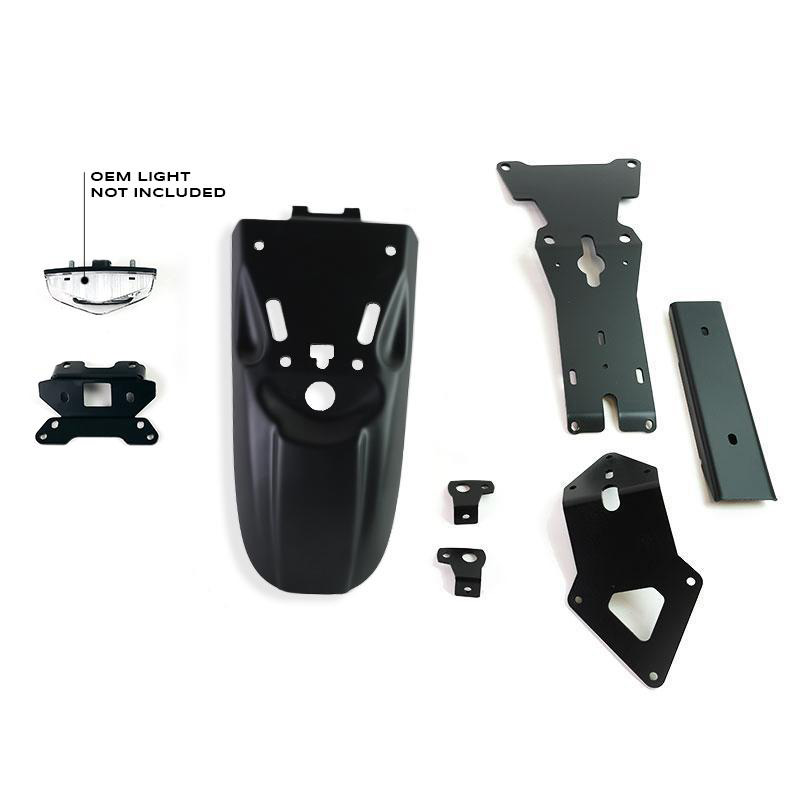ABS Heckfender, komplett mit allem was für die Montage benötigt wird. Es passt perfekt zum Design des Fahrrads. Es kann auch mit dem Originalsattel montiert werden, entweder mit oder ohne Soziusrahmen. Kennzeichenhalter aus Aluminium vorbereitet für den originalen Scheinwerfer (siehe Foto). Komplett modular, der Kennzeichenträger bzw. die Blinkerträger sind im Lieferumfang enthalten, können aber auch demontiert werden, wenn Sie die Pfeile oder das Kennzeichen anders positionieren möchten, zum Beispiel mit dem niedrigen Kennzeichenhalter Code: 1610. Die elektrische Verkabelung ist Plug-and-Play, alle originalen elektrischen Verbindungen werden wiederverwendet, es sind keine Schweißarbeiten oder Modifikationen der originalen Verkabelung erforderlich. Schraubensatz aus Edelstahl im Lieferumfang enthalten. Erhältlich in verschiedenen Farben und unlackiert.