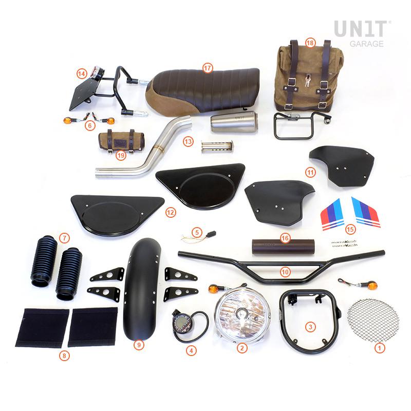 Dieser Rahmen ermöglicht es, den gesamten hinteren Teil zu verkürzen. Mit nur einem Zubehörteil können Sie schnell das gesamte Heck wechseln und das Heck des Motorrads auf fantastische Weise abschließen, indem Sie das Nummernschild und den mitgelieferten zugelassenen Scheinwerfer neu positionieren. Es lässt sich schnell montieren und ist mit speziellen Expandern ausgestattet, die eine feste Befestigung am Rahmen ermöglichen, ohne das Schweißgerät benutzen zu müssen und natürlich ... ohne neu streichen zu müssen. Der hintere Kotflügel kann der ursprüngliche bleiben oder wenn Sie möchten, können Sie ein klassisches Aluminium montieren. Im Bausatz enthalten: lackierter Metallrahmen, Scheinwerfer mit Lampen, Nummernschildhalter aus Aluminium mit Halterungen für Basic-Pfeile Cod. 1523 (Pfeile nicht enthalten).