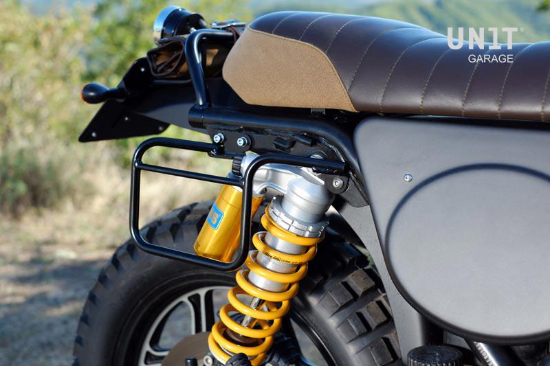 Komplett von Hand gefertigt und an Tig angeschweißt. Es ist in wenigen Minuten montiert und ermöglicht den problemlosen Einsatz des Motorrads mit dem Passagier an Bord.