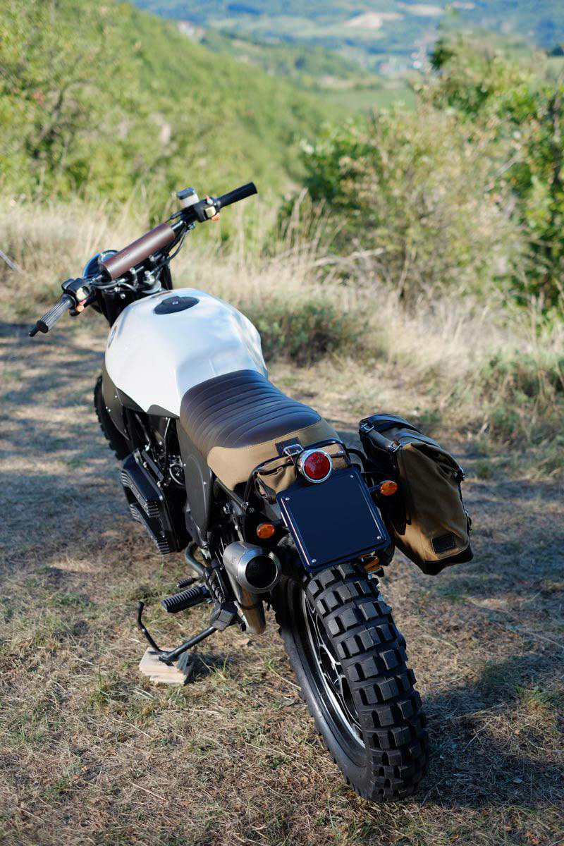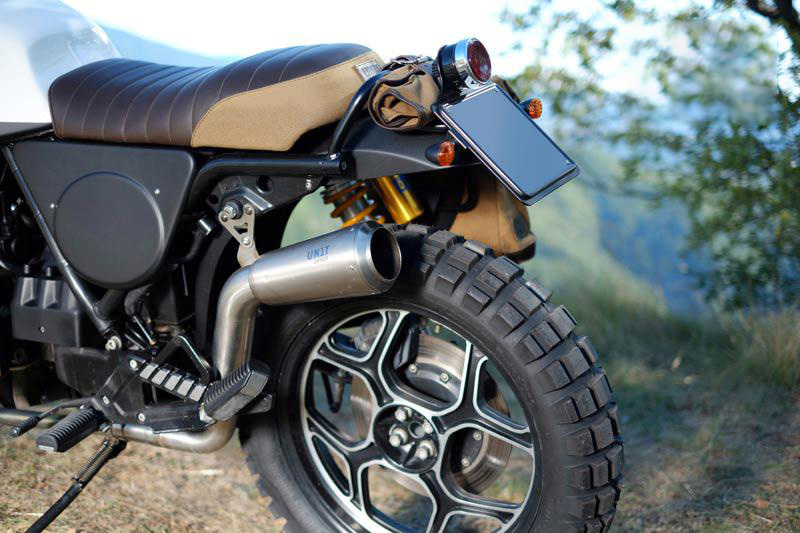 Das Ergebnis ist fantastisch, gesehen vom Leben ist sogar besser als in Bildern ... einfach und sauber mit dedizierten Zubehör: Tasche aus gewachstem Canvas und Leder mit Befestigungsrahmen, Ohlins entsprechend kalibriert und von erhöhter Länge, Titan Auspuff Terminal alle realisiert hoc für K75 und K100 . Eine Reihe von Zubehörteilen, die bereit, austauschbar und separat erhältlich sind, um Ihren K nach Ihren Wünschen anzupassen und anzupassen.