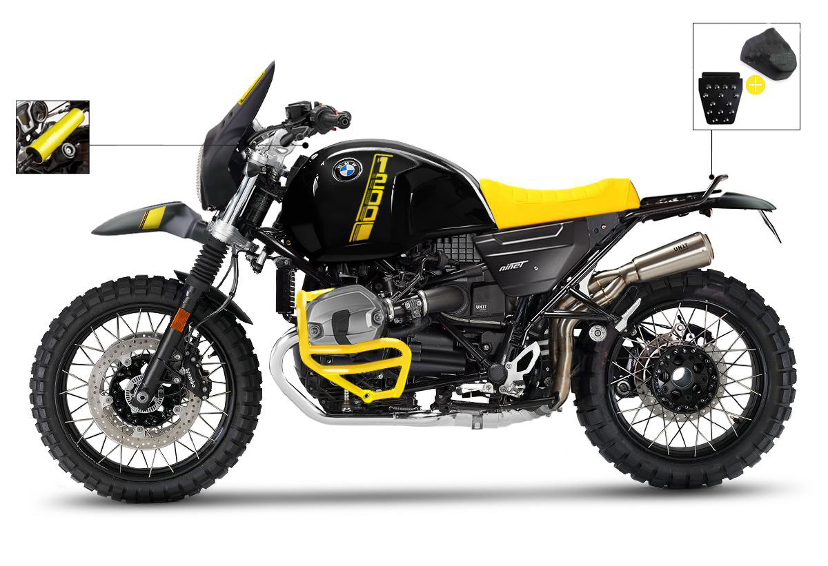 Das NineT PARIS DAKAR Yellow 40th Kit mit Zubehör macht Ihre nineT zu einer Ikone.