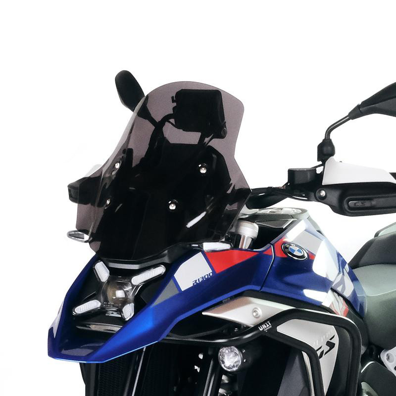Die Windschutzscheibe ist ein absolut persönliches Anhängsel und wir haben sie in verschiedenen Formen, Größen und Transparenzen entwickelt, jeweils passend für unterschiedliche Körpergrößen und Erwartungen. Der M-Bildschirm (die Gesamtmaße und die Differenz zum Original finden Sie auf den Fotos) lässt sich wie das Original in zwei Positionen verstellen und bietet optimalen Schutz für jede Körpergröße, ohne störende Turbulenzen. In dieser Version mit integrierten Deflektoren wird Ihre GS noch komfortabler, sowohl für den Fahrer als auch für den Beifahrer!