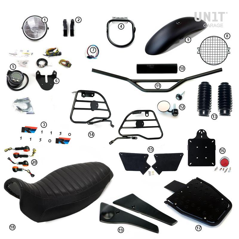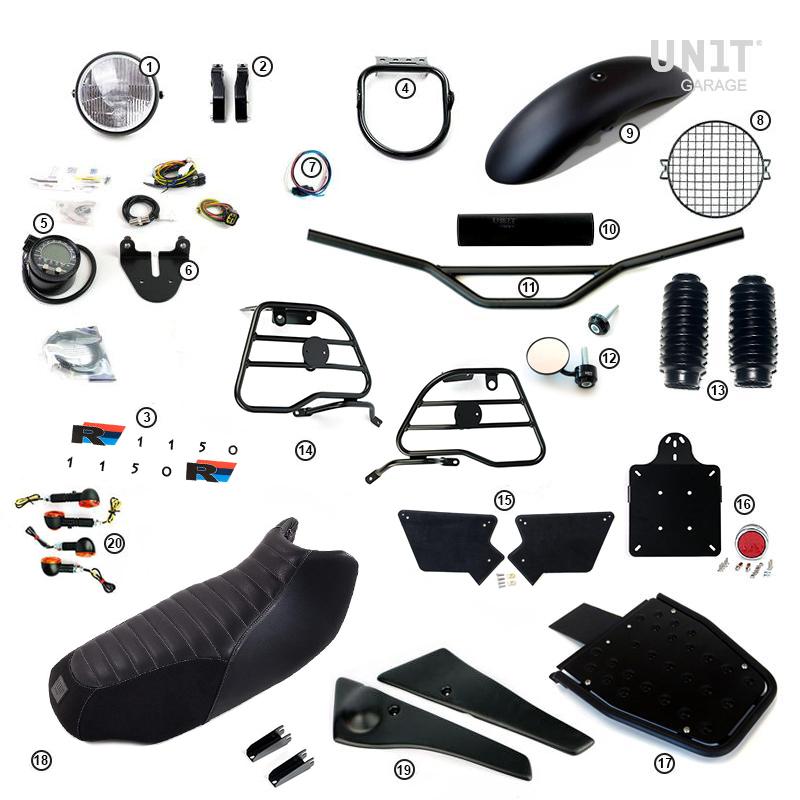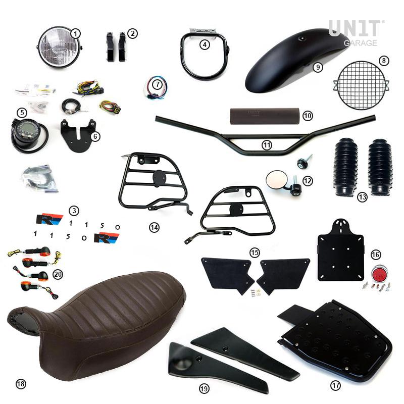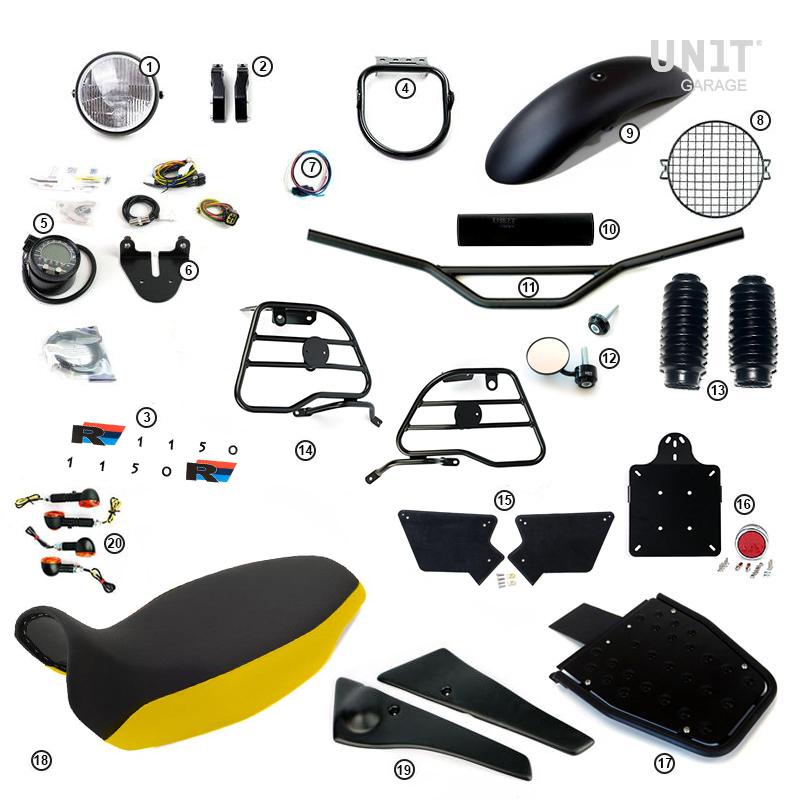 Das R1150R Kit ist jetzt auch in der BASIC-Version erhältlich. Die Front ist viel minimalistischer und der Kühler ist vor dem Motor positioniert. Das Fahrrad wird sehr einfach und leicht, schön ohne Windschutzscheibe oder alternativ mit Windschutzscheibe Code: 1236 oder Code: 1575.