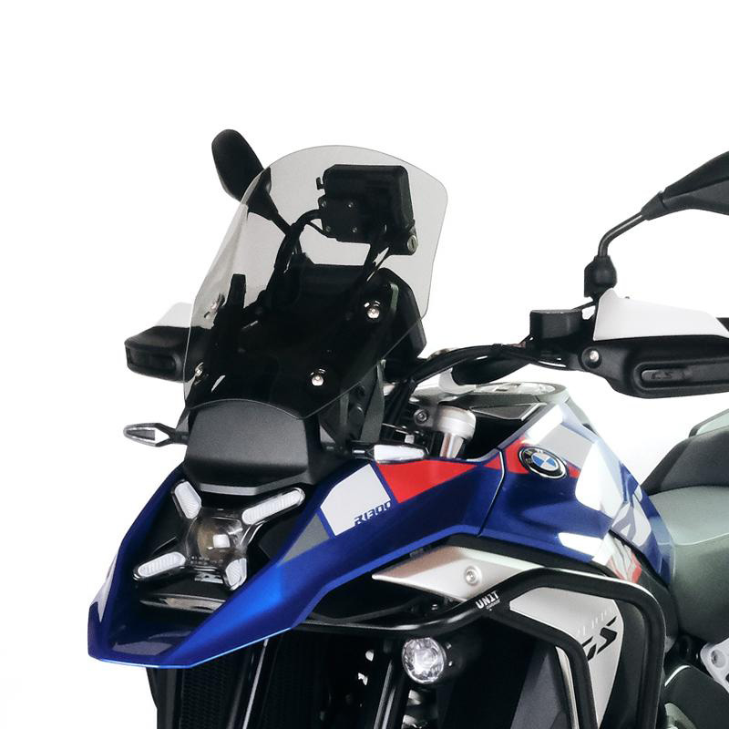 Die Windschutzscheibe ist ein absolut persönliches Anhängsel und wir haben sie in verschiedenen Formen, Größen und Transparenzen entwickelt, jeweils passend für unterschiedliche Körpergrößen und Erwartungen. Der M-Bildschirm (die Gesamtmaße und die Differenz zum Original finden Sie auf den Fotos), lässt sich wie das Original in zwei Positionen verstellen und bietet optimalen Schutz bei jeder Körpergröße, indem er störende Turbulenzen eliminiert, Ihr GS wird gleichmäßiger ergonomischer!