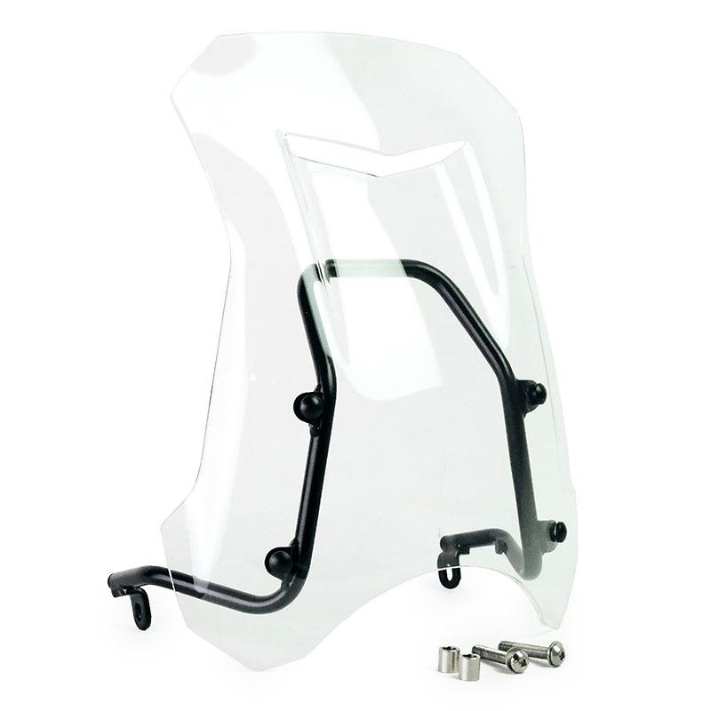 Komplett mit Halterungen und Schrauben passt es perfekt zu den Linien der Front. Hergestellt aus 4 mm dickem PMMA (Acryl). Es ist sehr einfach zu montieren und bietet hervorragenden aerodynamischen Schutz. Die vordere Lamelle reduziert Turbulenzen und das Stützrohr dient gleichzeitig als GPS-Halterung.