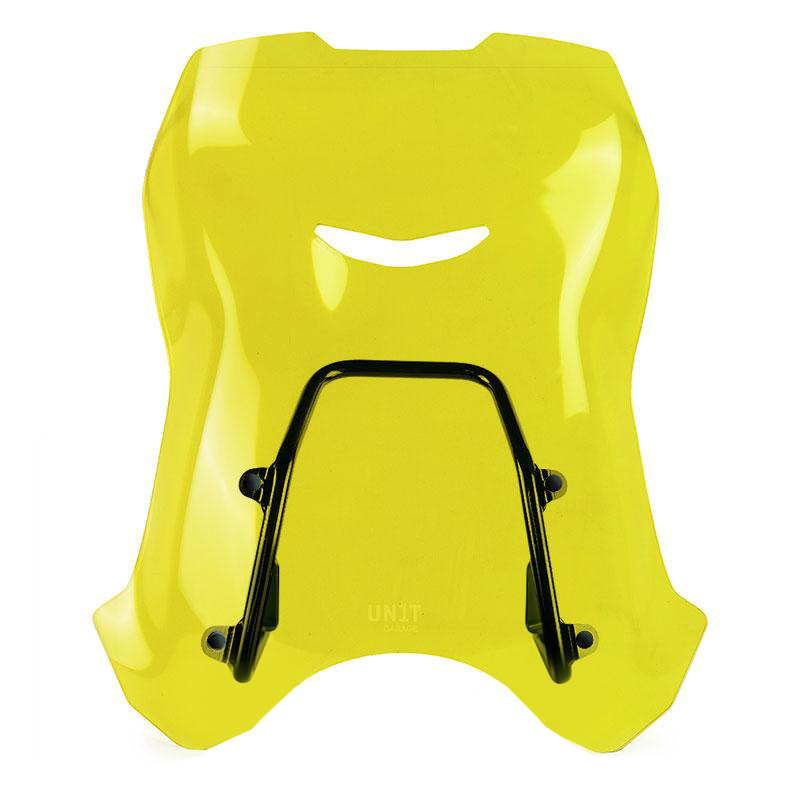 In dieser größeren Version haben wir den aerodynamischen Schutz weiter implementiert. Komplett mit neuer Halterung und Schrauben, passt es stilistisch perfekt zu den Linien der Front. Hergestellt aus 4 mm dickem PMMA (Acryl). Der Zusammenbau ist sehr einfach. Die vordere Entlüftung verhindert Turbulenzen und das Stützrohr dient gleichzeitig als GPS- oder Mobiltelefonhalterung.