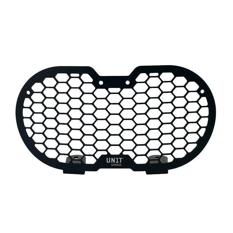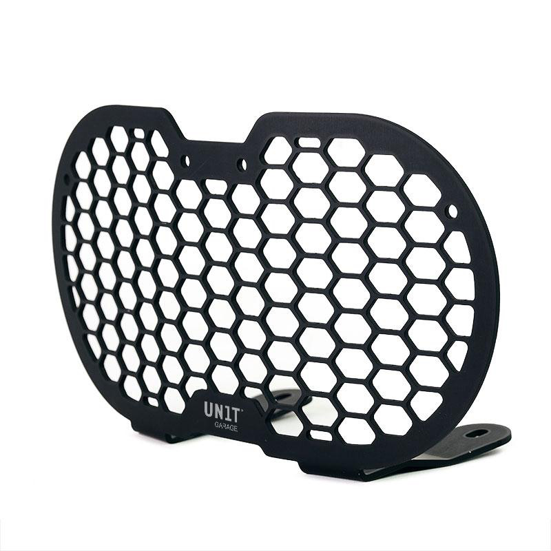 Schützt den DesertX-Frontscheinwerfer im Ein-/Aus-Stil, perfekt für Ihre Fahrten im Gelände und anspruchsvollere Fahrten. Es besteht aus schwarz eloxiertem Aluminium und wird komplett mit allem geliefert, was für die Montage benötigt wird.