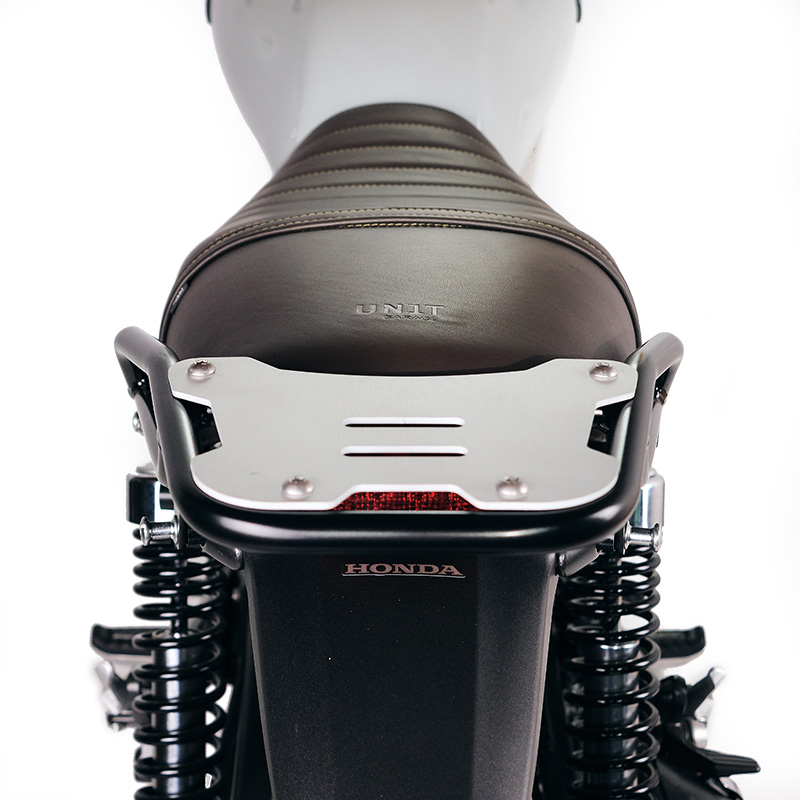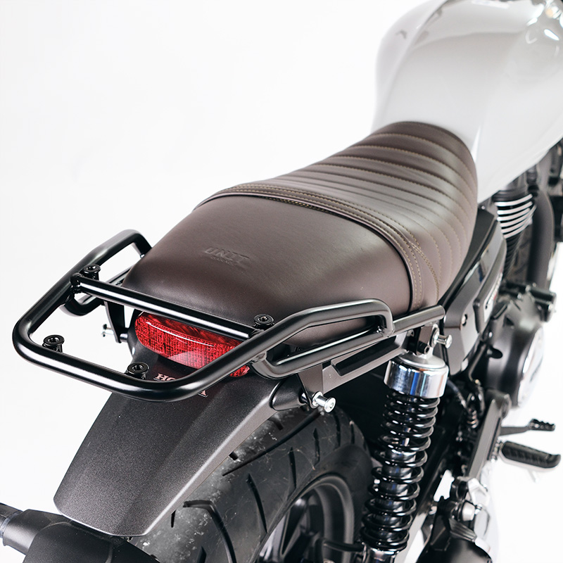 Wenn Sie ein Hardtopcase montieren oder viel Gepäck auf Ihrer Honda GB350S transportieren möchten, ist dieser Gepäckträger die perfekte Wahl! Er ergänzt den Heckbereich und verfügt über praktische Soziusgriffe. Robust und praktisch, bietet er dank der vier vorinstallierten Befestigungen Platz für die U108-Platte und die AL3-Platte für das Aluminium-Topcase. Erhältlich mit hochbeständiger, mattschwarzer Epoxidpulverbeschichtung.