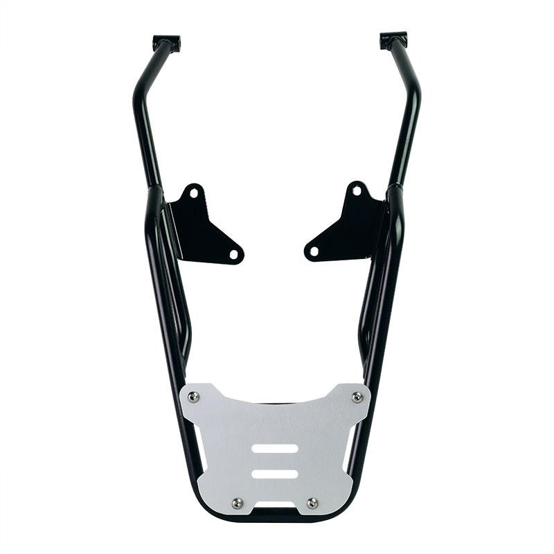 Gepäckträger aus Stahlrohr mit mattschwarzer Epoxidpulverbeschichtung. Es vervollständigt das Heck und ist mit Griffen für den Sozius ausgestattet, es wird ganz einfach mit den mitgelieferten Schrauben am Originalrad befestigt. Robust und praktisch, ist es auf der Auflagefläche mit 4 Buchsen zur Befestigung der AL5-Platte versehen (die separat erworben werden kann oder bereits im Atlas-Topcase Code: AL3 enthalten ist).