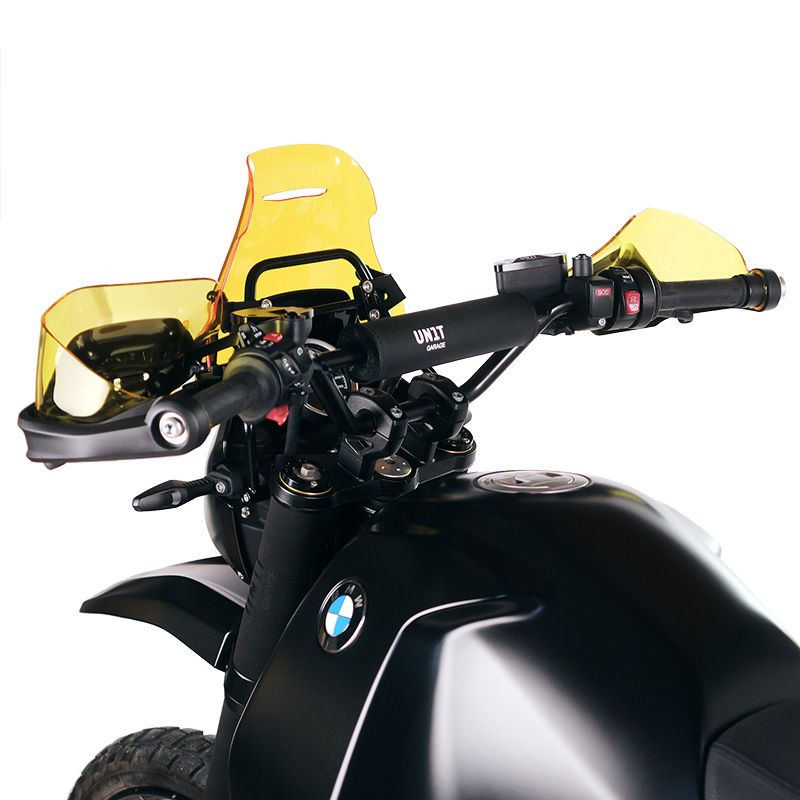Für die BMW R12 G/S wünschten wir uns einen „Old School“-Lenker mit Querstrebe und konstantem Durchmesser (22 mm). Er verleiht dem Motorrad einen aggressiven Look und ermöglicht eine entspanntere Sitzposition. Er besteht aus Stahl mit mattschwarzer Epoxidpulverbeschichtung und wird mit allem geliefert, was für die Montage an den originalen Risern und Armaturen benötigt wird. Änderungen an den Kabeln oder Bremsleitungen sind nicht erforderlich.