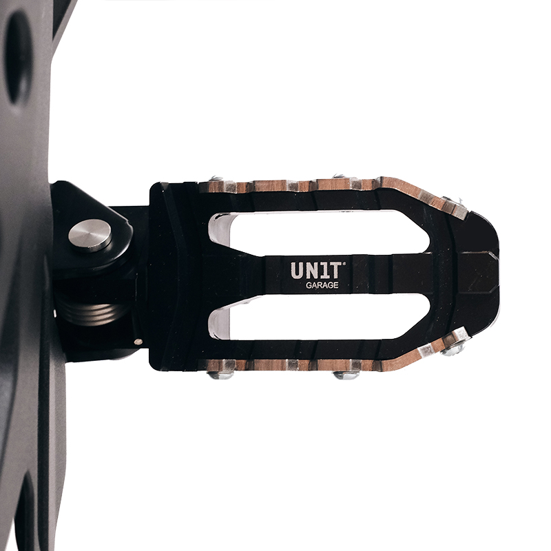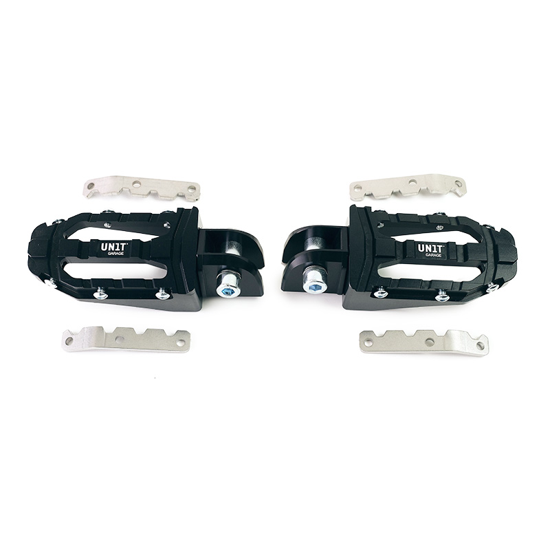 Paar aus massivem CNC gefertigte Fußstützen mit Edelstahleinsätzen. Sie verbessern den Halt des Stiefels im Gelände, insbesondere beim Fahren im Stehen, erheblich. Darüber hinaus sind diese Fußstützen um 30 Grad drehbar und ermöglichen so jedem Fahrer eine hervorragende Ergonomie.
