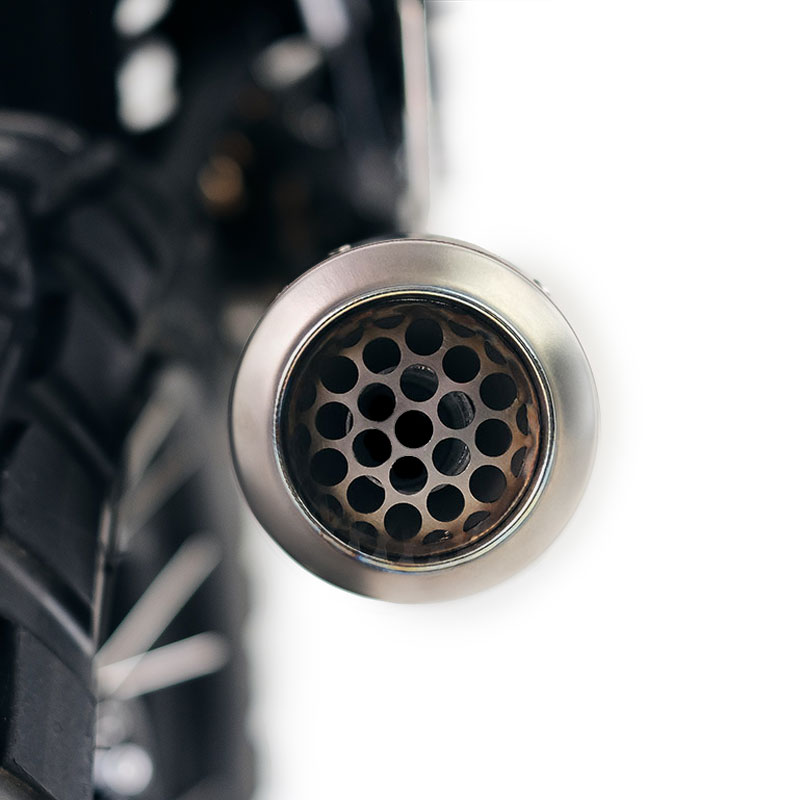 Für die R1300GS ADV wollten wir einen raffinierten und eleganten, aber auch leistungsstarken Auspuff. Leistung und Leichtigkeit: tiefer Klang über die gesamte Leistungskurve und große Gewichtsersparnis. Zugelassener Schalldämpfer aus Titan mit Edelstahlanschluss. Es kann auf die Originalkrümmer montiert werden, wobei das Auslassventil und der Katalysator serienmäßig bleiben, oder auf unsere Rennkrümmer. Eine Neuzuordnung des Steuergeräts oder andere Änderungen sind nicht erforderlich. Es wiegt etwa 0,7 kg weniger als das Original. Es kann in wenigen Minuten einfach auf der Originalhalterung montiert werden und ist mit allen Original- oder Aftermarket-Gehäusen kompatibel. Der Sound wird Sie in den Wahnsinn treiben und die Lieferung... auch!