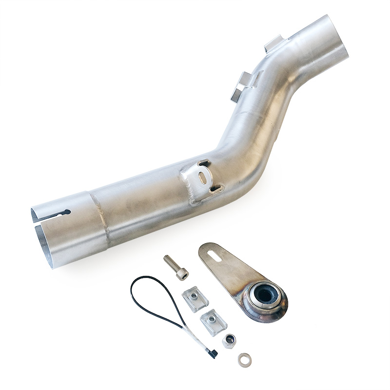 Gefertigt aus Edelstahl mit hochwertigen sichtbaren Schweißnähten, für den Renneinsatz, wiegt es nur 500 Gramm. Die Leistung steigt und es ist auch mit den originalen Krümmern und Auspuff kompatibel.