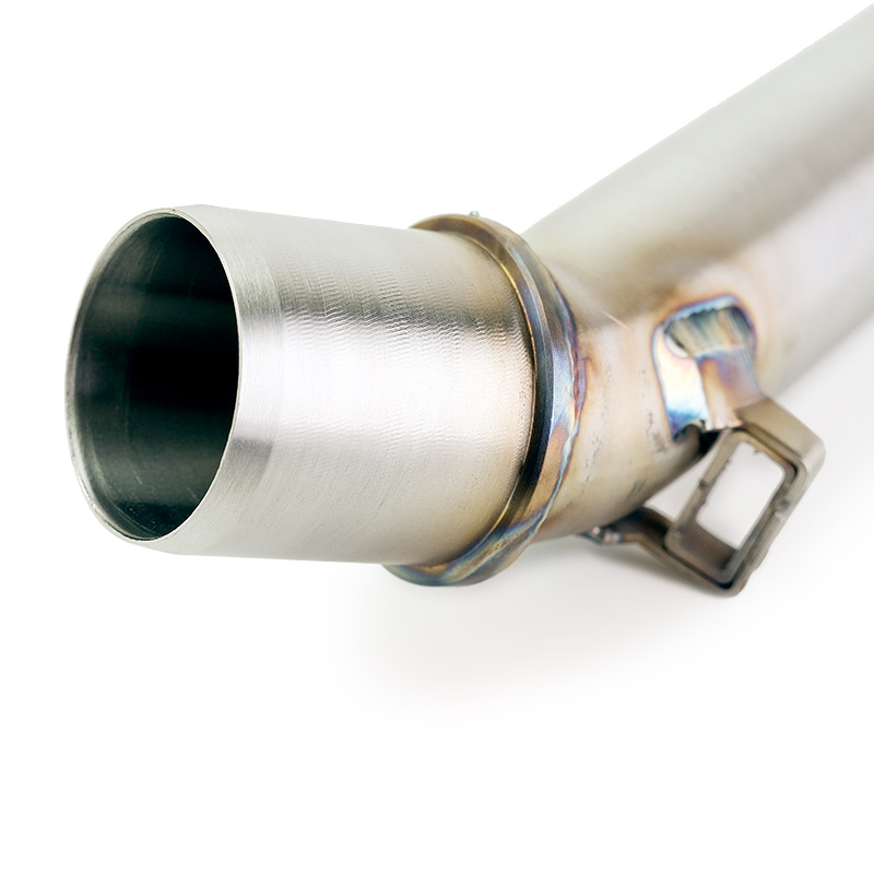 Gefertigt aus Edelstahl mit hochwertigen sichtbaren Schweißnähten, für den Renneinsatz, wiegt es nur 500 Gramm. Die Leistung steigt und es ist auch mit den originalen Krümmern und Auspuff kompatibel.