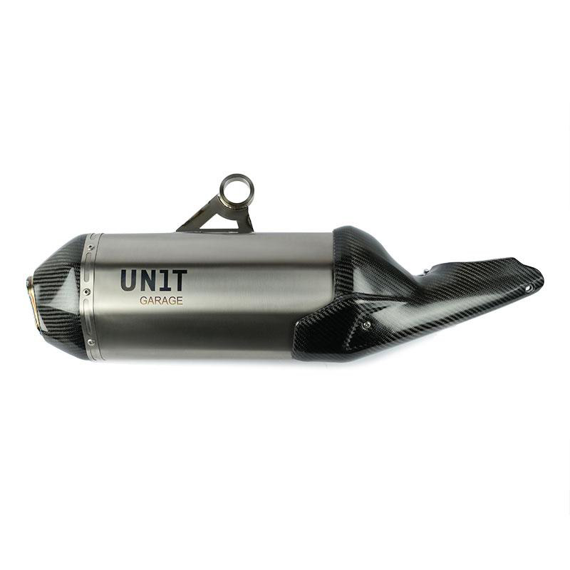 Für den Gs wollten wir einen raffinierten und eleganten und dennoch kraftvollen Auspuff. Leistung und Leichtigkeit: tiefer Klang über die gesamte Leistungskurve und große Gewichtsersparnis. Homologierter Schalldämpfer aus Titan mit Hitzeschild vorne und Carbon-Schalldämpfer. Das Titan-Flammenschutznetz und der Carbon-Anschluss können entfernt werden, um Zugang zum DB-Killer zu erhalten. Es ist an den Originalkollektoren montiert und verlässt das Auslassventil und den Standardkatalysator. Das Steuergerät muss nicht neu zugeordnet werden. Es wiegt etwa 3 kg weniger als das Original. Es lässt sich in wenigen Minuten problemlos auf dem Originalträger montieren und ist mit allen Original- oder Aftermarket-Gehäusen kompatibel. Der Sound wird dich verrückt machen und die Lieferung ... auch!