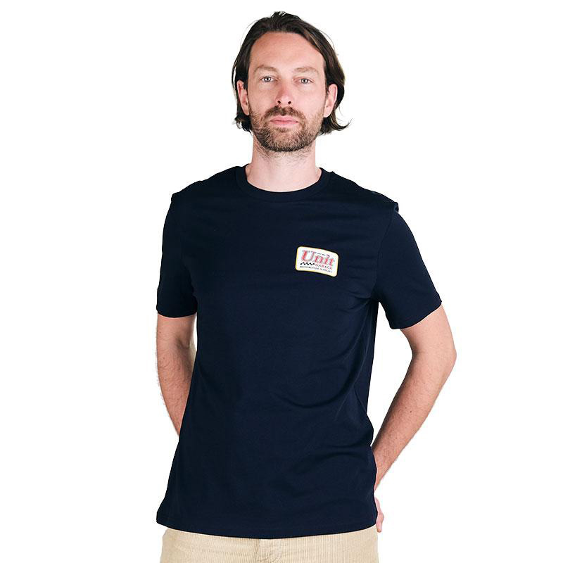 Unit Garage T-Shirt aus 100 % Bio-Baumwolle, einfacher Schnitt und mittlere Passform.