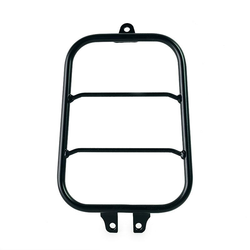 Gepäckträger aus Stahl mit mattschwarzer Epoxidpulverbeschichtung, Befestigungsschrauben.