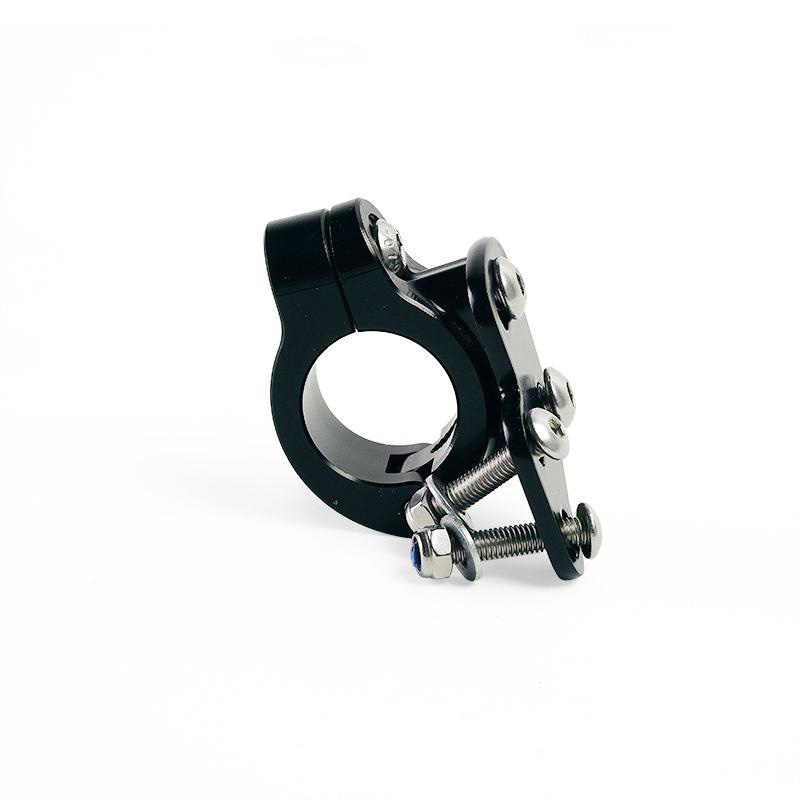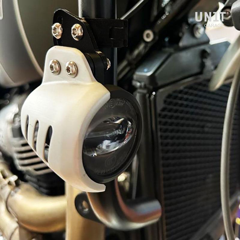 Mit dieser CNC-gefrästen Halterung können Sie die originalen Triumph-Scheinwerfer an unserem Dual Scrambler-Kit oder allgemein an Lenkern mit 25 mm Durchmesser befestigen. Das System ermöglicht es Ihnen, den Befestigungsträger zu drehen, sodass Sie ihn auch an geneigten Stangen montieren können. Sie haben auch verschiedene Möglichkeiten, indem Sie den Arm zusätzlich drehen. Die Halterung kann auch für kleine Kameras oder GoPros verwendet werden