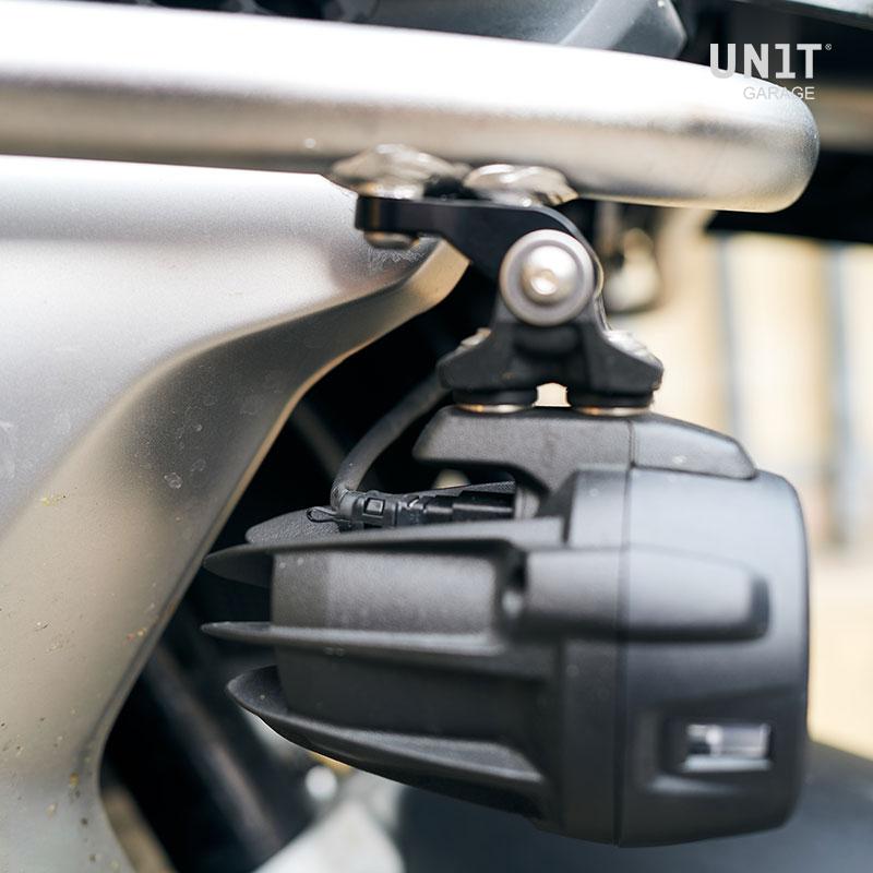 Mit dieser Halterung, die Sie bei CNC erhalten, können Sie die originalen BMW- oder ähnlichen Scheinwerfer mit dem Strichcode: 1922 Silver befestigen. Das System ermöglicht es Ihnen, die Befestigungshalterung zu drehen, um den richtigen Winkel auszuwählen. Die Halterung kann auch für kleine Kameras oder GoPros verwendet werden.